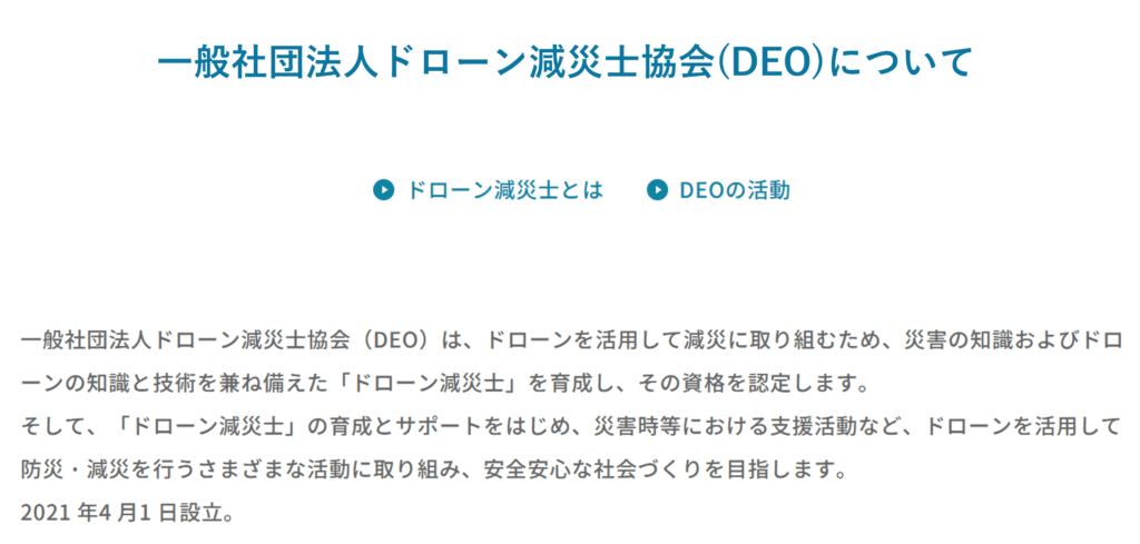リンク:一般社団法人ドローン減災士協会(DEO)