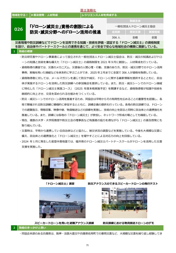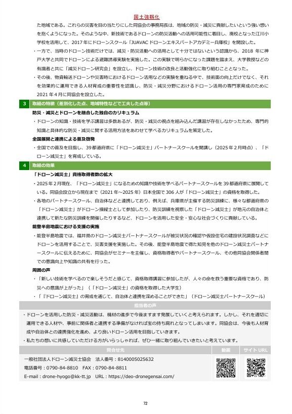 【国土強靭化 民間の取組事例集】 2025.05.122025.05.12株式会社blueからのお知らせ HOME ブログ 株式会社blueからのお知らせ 【国土強靭化 民間の取組事例集】 Post Share Line RSS note 国土強靭化民間の取組事例集へ「一般社団法人ドローン減災士協会」事業が採択されました。 026「ドローン減災士」資格の創設による防災・減災分野へのドローン活用の推進 Post Share Line RSS note 株式会社blueからのお知らせ 熊本地震の日 防災パークin花畑広場20250413 関連記事一覧 熊本地震の日 防災パークin花畑広場20250413 2025.04.15株式会社blueからのお知らせ 公式サイトオープン 2018.05.29株式会社blueからのお知らせ 【ドローン減災士】ぼうさい こくたい in 熊本 2024 2024.10.21株式会社blueからのお知らせ “DJI CAMP” はじめました 2018.06.16株式会社blueからのお知らせ